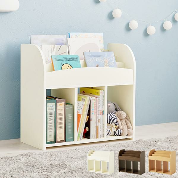 仕切りの高さが少しずつ高くなっており、収納場所に困りがちな大きいサイズの本もスッキリ収まります。下段はA4サイズも入るオープン収納で段差がないので本の出し入れもスムーズ。おもちゃやノートは下段にしまえば、一人でお片付けもできちゃいます♪生活感のあるものをコンパクトに収納できるので、ディスプレイするものを絵本から雑誌に変えるだけでカフェのようなオシャレなマガジンラックにも!シンプルな見た目なので子供部屋だけでなく、リビングやワンルームのお部屋のお気に入りのディスプレイスペースとしても活躍しそう♪