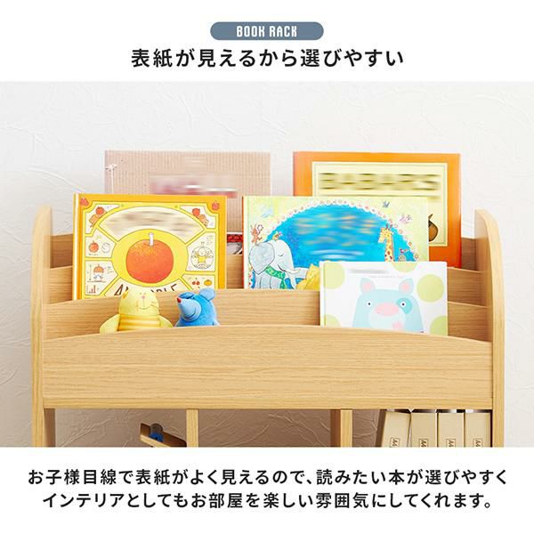 お子様が絵本を見つけて取り出しやすい高さ設計で、お子様の「できた!」をサポートする絵本ラックです。