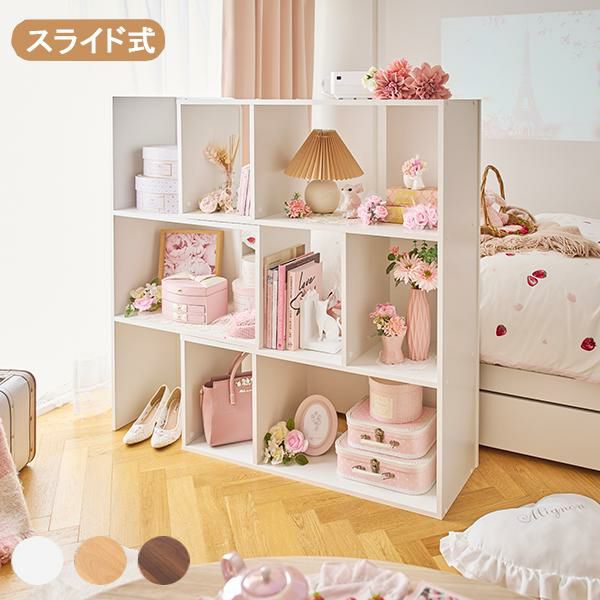 スライドして幅が変えられるので、お部屋に合わせた収納やコーディネートがしやすい3段オープンラック。
