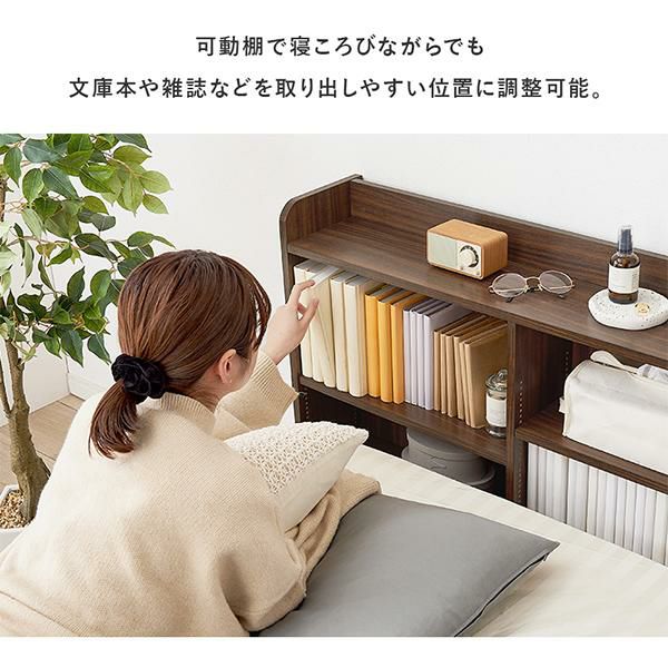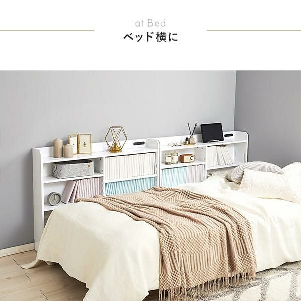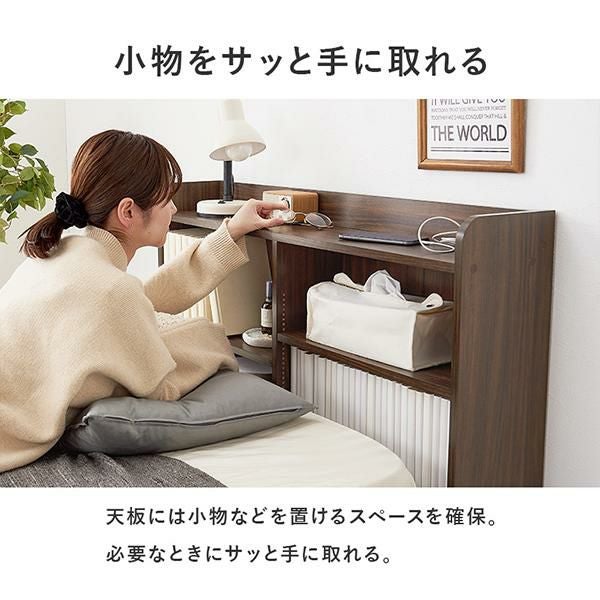 ベッドフレームに合わせて使いやすい高さに設計され、マットレスを置いても収納棚がすべて隠れないのでお部屋のイメージチェンジも叶います。