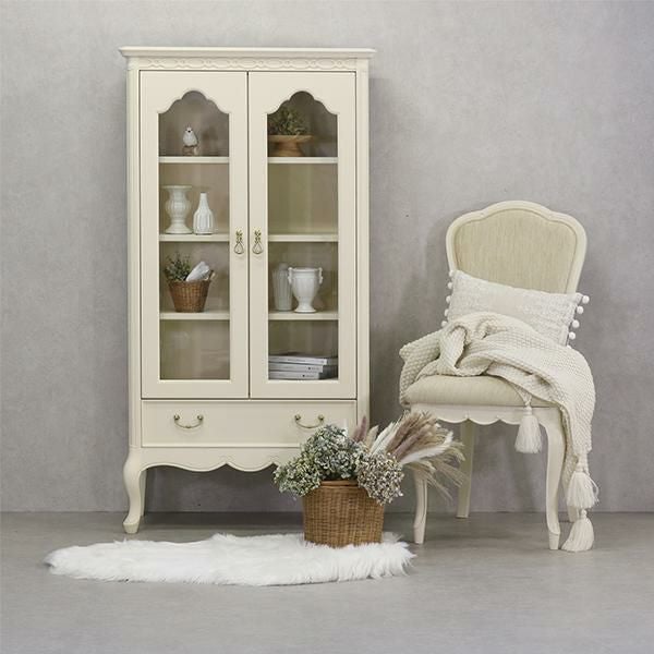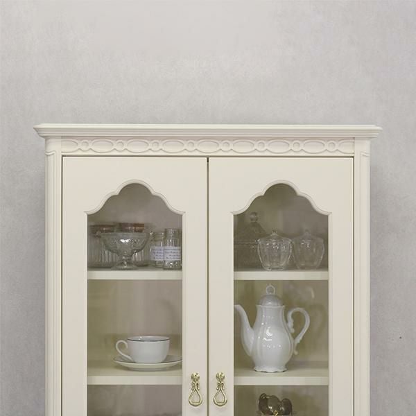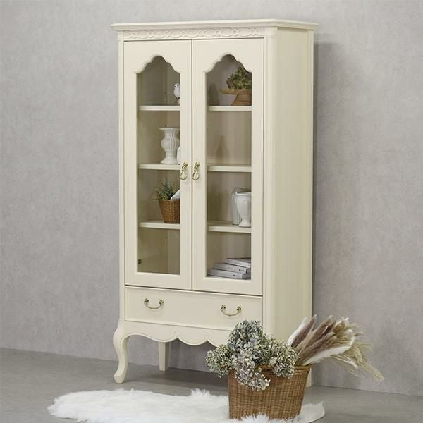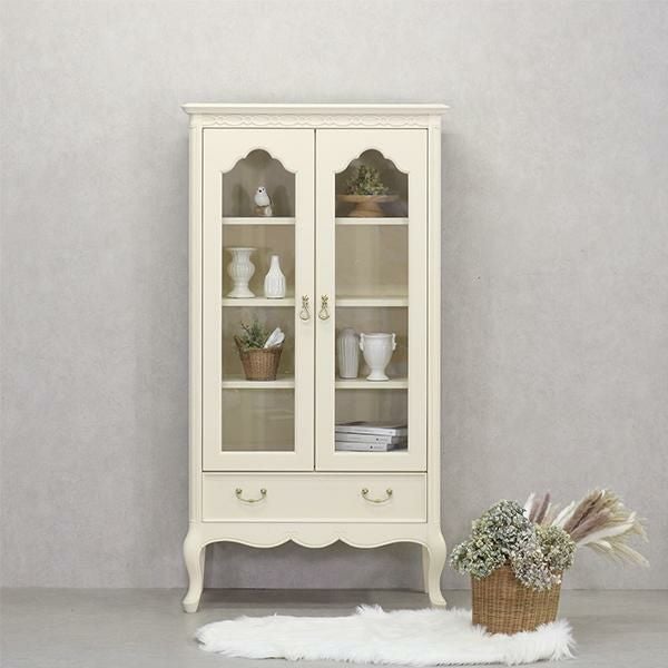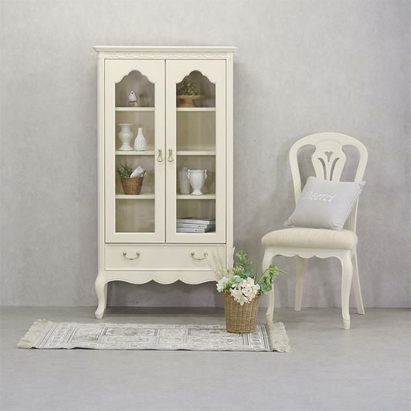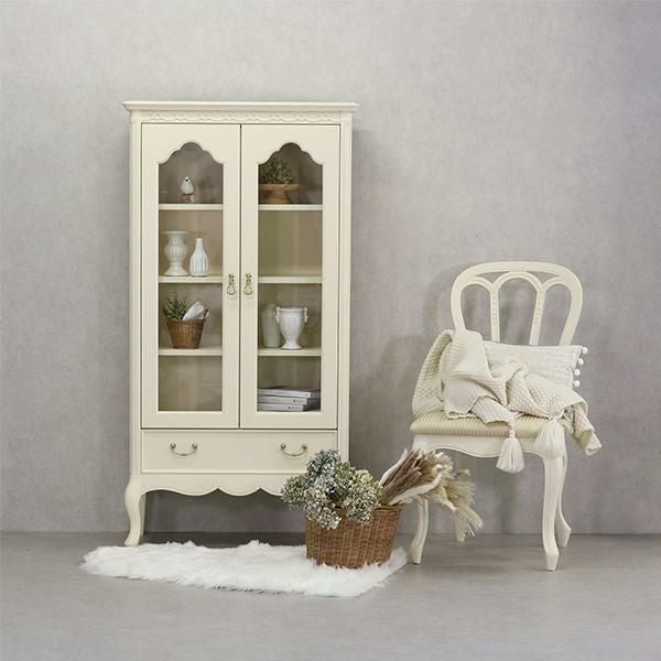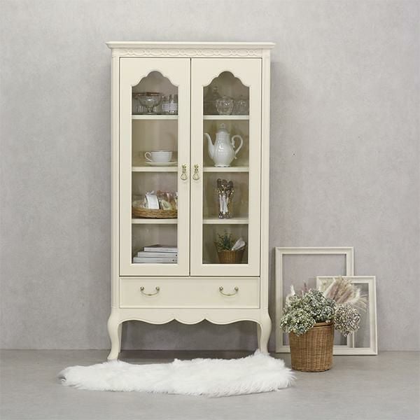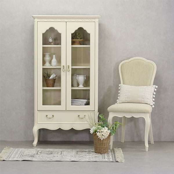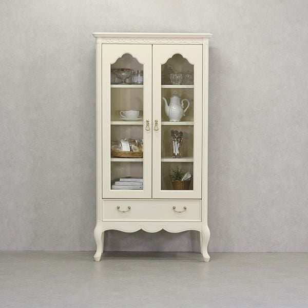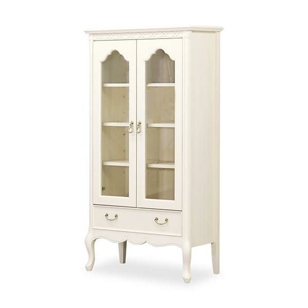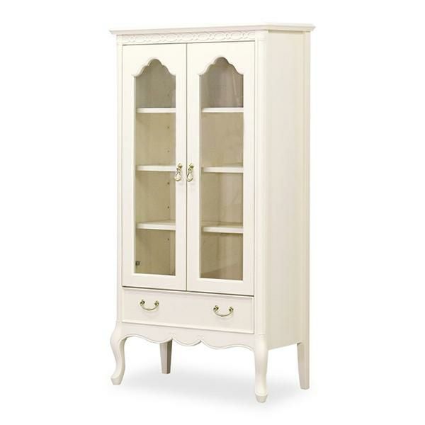 ゆるやかにカーブした柔らかなラインとカブリオールレッグ(猫脚)と彫刻が上品な雰囲気と可愛らしさを際立たせています。棚板3枚付・引出し1杯。