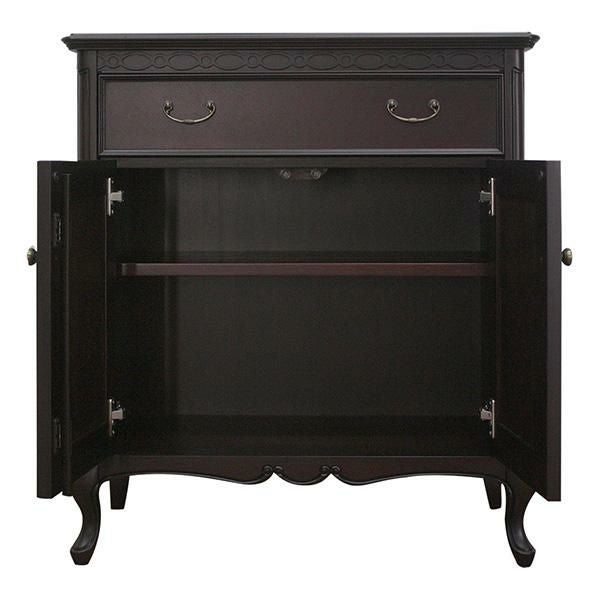 18世紀、ルイ15世時代のフランス宮廷から始まり、貴族の宮殿や上流階級のご婦人を中心に流行した、直線を排した軽快で華麗なフランス・サロン文化を彩る装飾様式だったロココ調家具のエッセンスを残したフレンチカントリースタイルを、よりカジュアルに実用的なアイテムでセレクトしたトータルコーディネートシリーズです。マホガニー材を贅沢に使い、表面は厳選された木目を使った化粧張りを施し、フレンチエレガンスの代名詞といえる「カブリオールレッグ」(猫脚)と、なめらかな女性的な美しいラインとマホガニー無垢材を削り出した彫刻が特徴です。