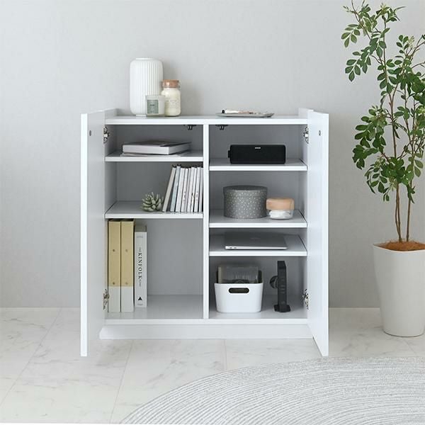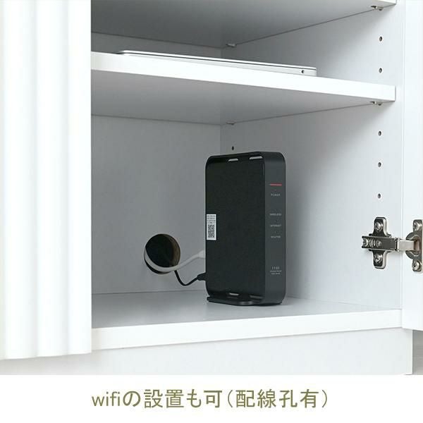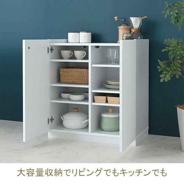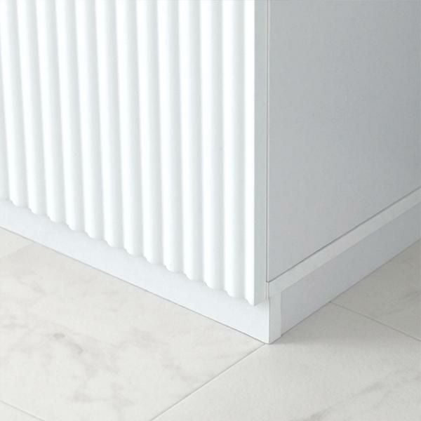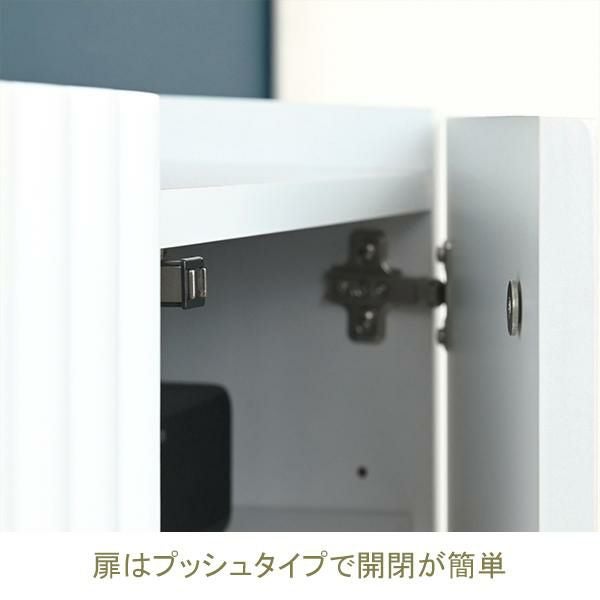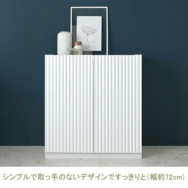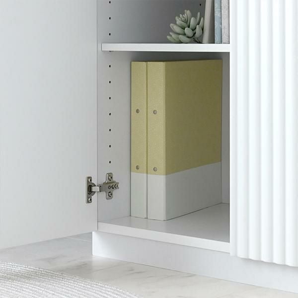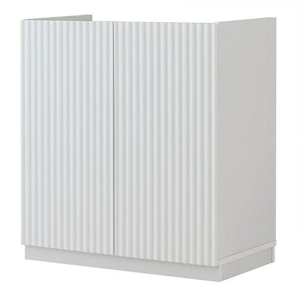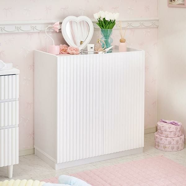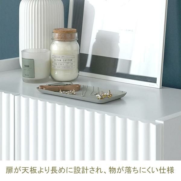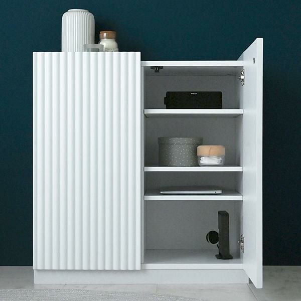 つや消しホワイトの波板が出す立体的な陰影が美しいデザインのキャビネット。
