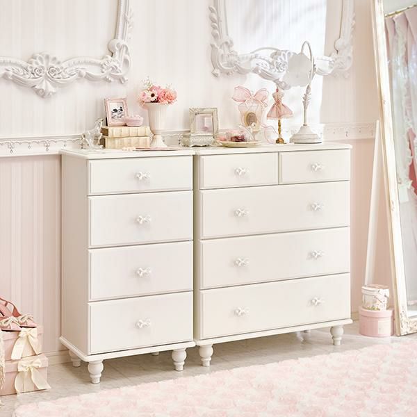 人気のホワイト系を中心に、かわいいデザインのタンスやチェスト、収納ケースを取り揃えています。爽やかで清潔感漂う白家具は、お部屋の雰囲気に調和しやすい色合いでもあるため人気です。ピュアホワイトのボディにホワイト取っ手を合わせたBlanc(ブラン)や、クリスタル調のキラキラ取っ手と優雅な曲線を描いた脚部が特徴のInnocent(イノセント)など、シリーズで揃えることでお部屋のコーディネートを統一することができるシリーズ家具も取り扱っています。