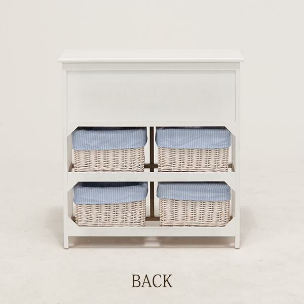 リビングや寝室などおうち中で活躍する、コンパクトなバスケット付チェスト。バスケットのリボンや天板下のデザインなど、可愛いポイントがいっぱい♪オープン部は、コモノや服をショップ感覚でディスプレイできちゃいます。