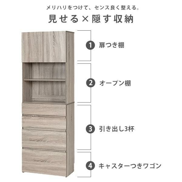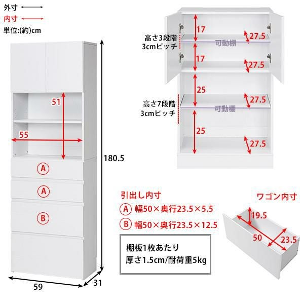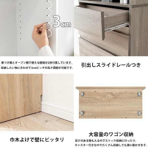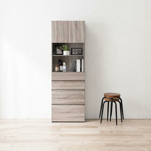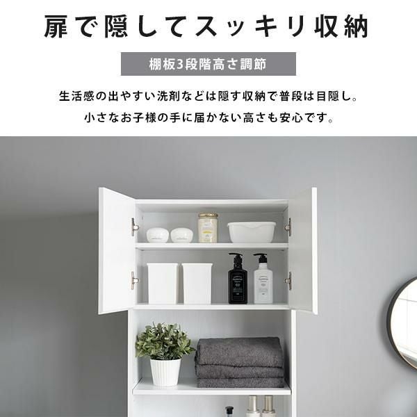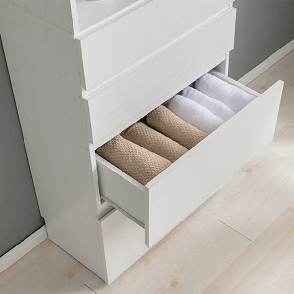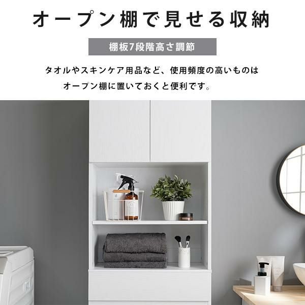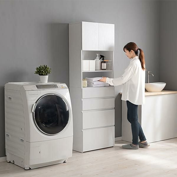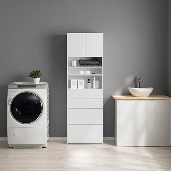 スマートな見た目と高さを活かした収納力。ランドリー、キッチン、リビングでも使えます。幅59cm