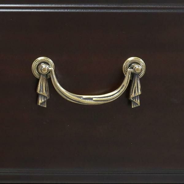 1段目はアンティーク調丸把手・2段目からはクラシックなタッセルタイプのハンドル・各段脱落防止用ゴムストッパー付き