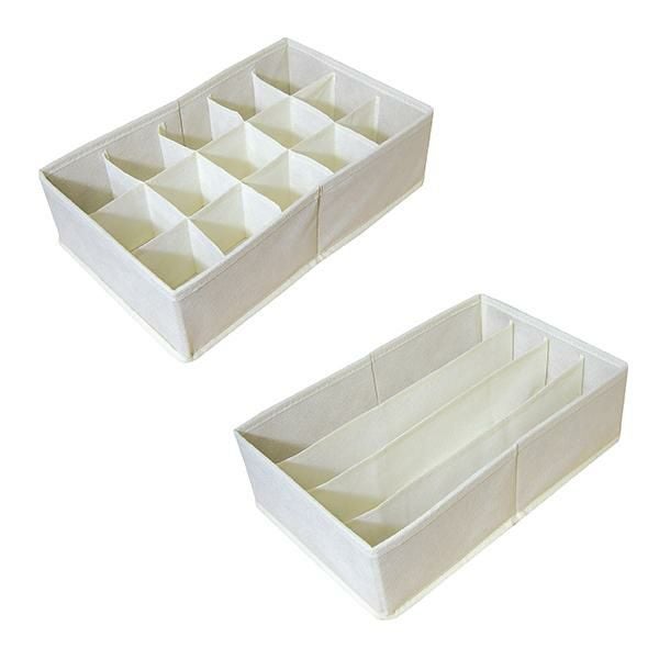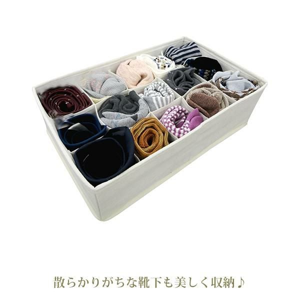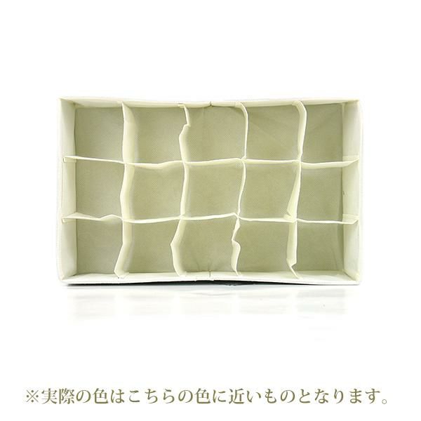 チェストや収納ボックスの中でなくなりがちなファッション小物を用途に合わせて美しく収納。朝のバタバタしてる身支度もスマートになりそうな仕切りBOX♪下着・靴下・ハンカチなどの収納にピッタリな15マスタイプと、インナーや薄手のトップス等も収納できる4マスタイプの2個セットです。