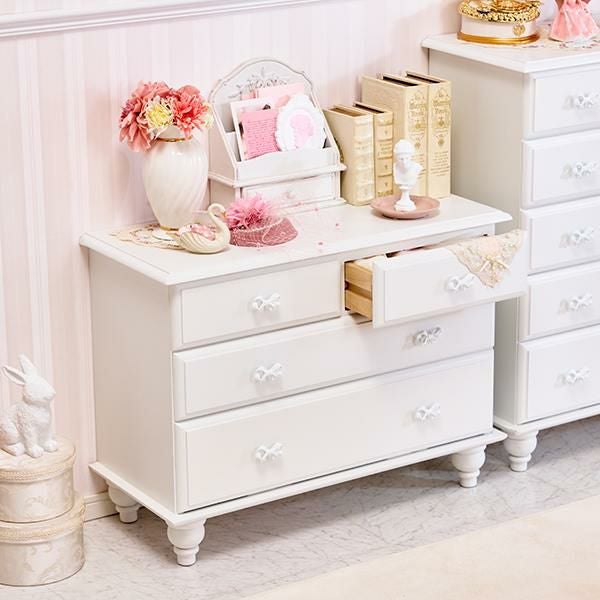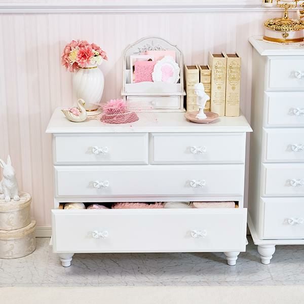 リボンがフェミニンで可愛い、クラシカルな真っ白チェスト♪