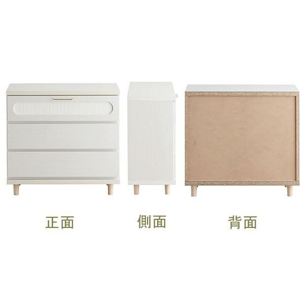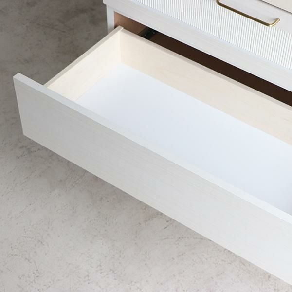 ミルキーホワイトの新しい質感が、かわいいチェスト。明るく清涼感のある佇まいは、お部屋の質を上げてスッキリとした印象に仕上げてくれます。たっぷりの収納力に、使いやすさとデザイン性のバランスが取れたアイテム。日本の職人が丁寧に作った高品質の商品です。安心安全のF☆☆☆☆ナチュラルなお部屋コーディネートが叶い、楽しいおうち時間が過ごせそう。