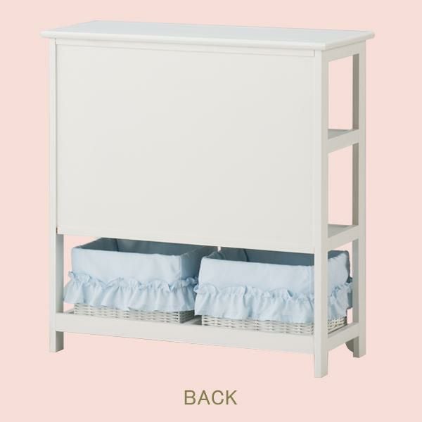 真っ白なフレームの天板下スカラップデザインが優しいムードのチェストラック。