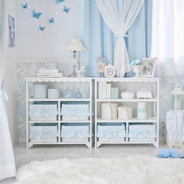 ボックスカバーは優しく淡い水色なので白×ブルーのロマンティックガーリーなお部屋のコーディネートにピッタリのアイテムです。