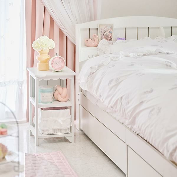 オールホワイトカラーなのでカーテンやラグなどファブリックの色味やコーディネートを選ばず可愛いお部屋作りが叶います。