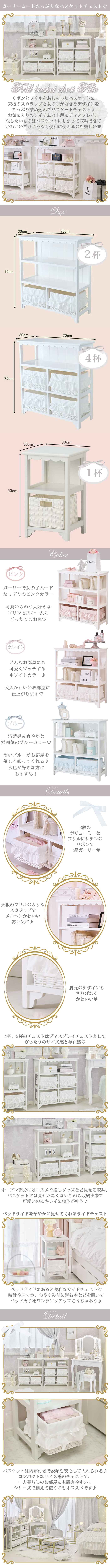 たっぷりフリルとリボンのバスケットにスカラップのデザインで、可愛いをたっぷり詰め込んだサイドチェスト♪