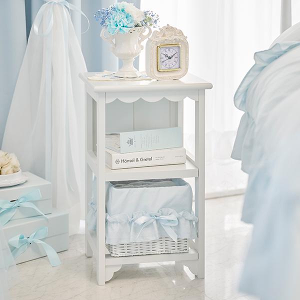 たっぷりフリルとリボンのバスケットにスカラップのデザインで、可愛いをたっぷり詰め込んだサイドチェスト♪