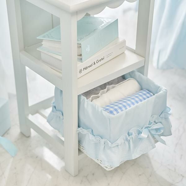 ボックスカバーは優しく淡い水色なので白×ブルーのロマンティックガーリーなお部屋のコーディネートにピッタリのアイテムです。