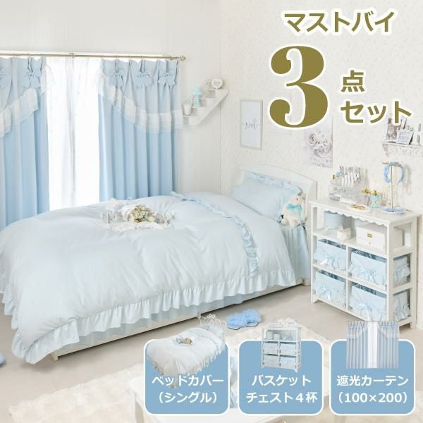 セット内容:バスケットチェスト+ベッドカバー3点セット(枕カバー+掛け布団カバー+ベッドスカート)+カーテン 計3点