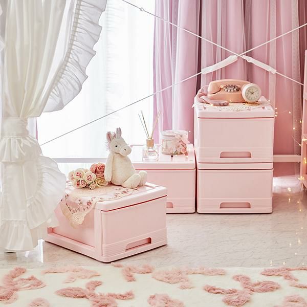 優しいパステルピンクが可愛い引き出し収納ケースの4個セット!