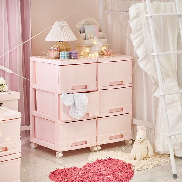 優しいパステルピンクがかわいい3段チェストの2個セット!
