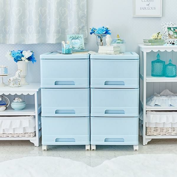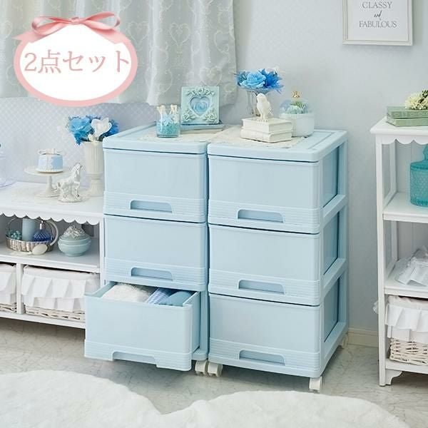 淡いカラーが可愛いアイスブルーの3段チェストの2個セット!