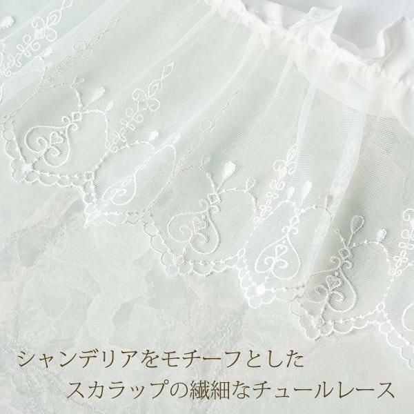 ピンクに重ねた繊細なシャンデリアモチーフのスカラップレースが、ロマンティックなムードたっぷりです。