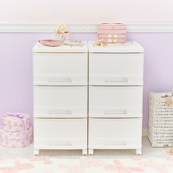 どんなインテリアにも馴染む、真っ白の3段チェストを2個セットでお届け♪