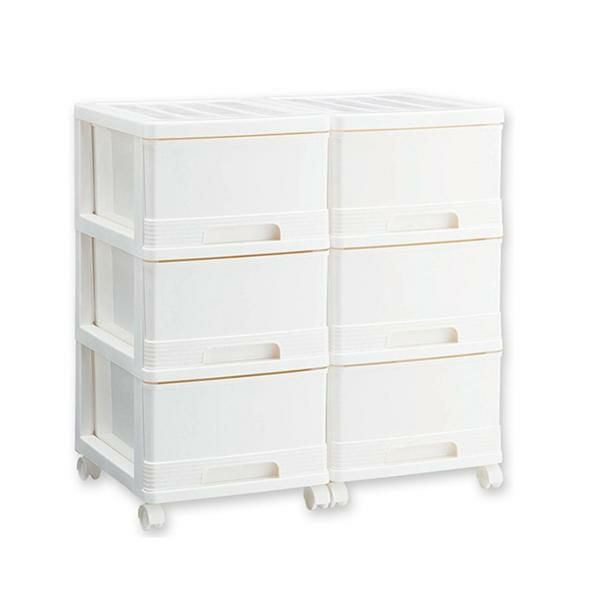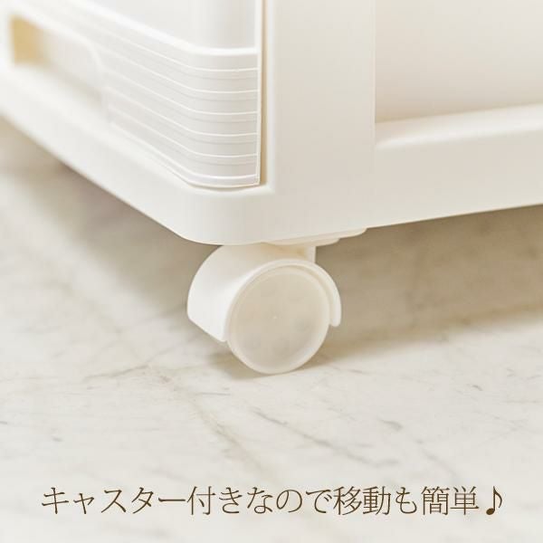 クローゼット、キッチン、浴室前などの様々な場所で活躍する、キャスター付きの3段収納ケース。