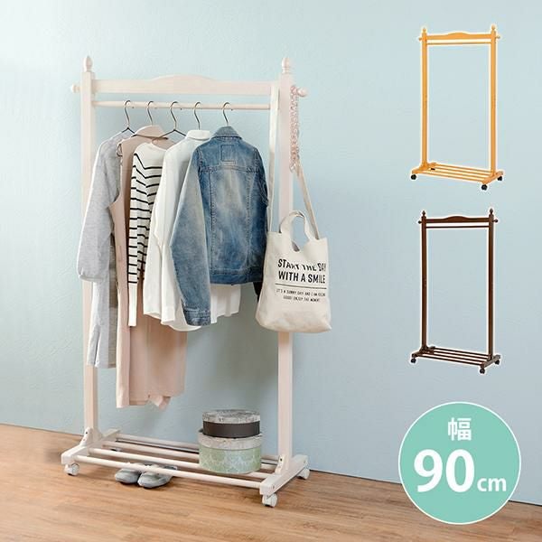 緩やかなカーブを描くデザインがシンプルだけど可愛い、幅90cmのハンガーラック。