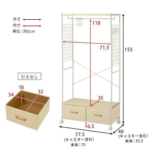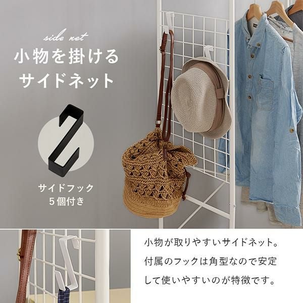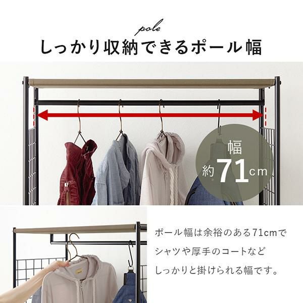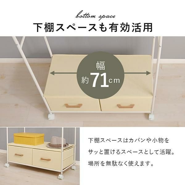 幅約71cmの前後可動式ハンガーポールはスライドさせてお好みの位置に調整できます。