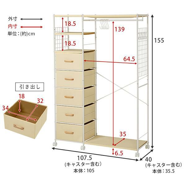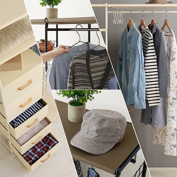 ハンガー収納も引出し収納も1カ所に!たっぷり収納できるハンガーラック