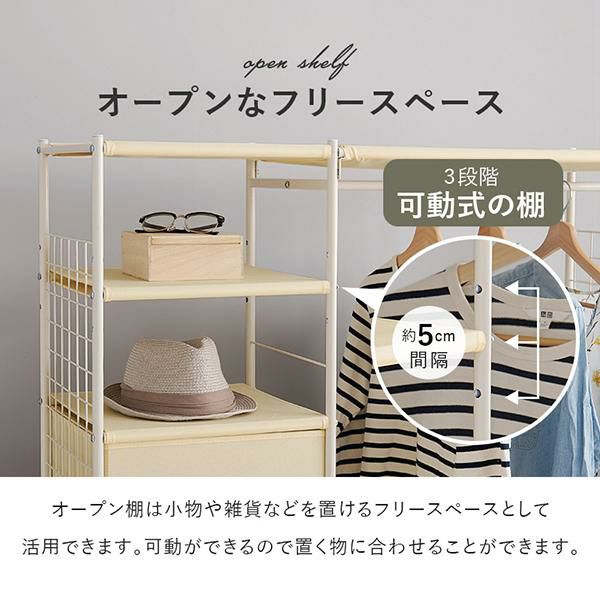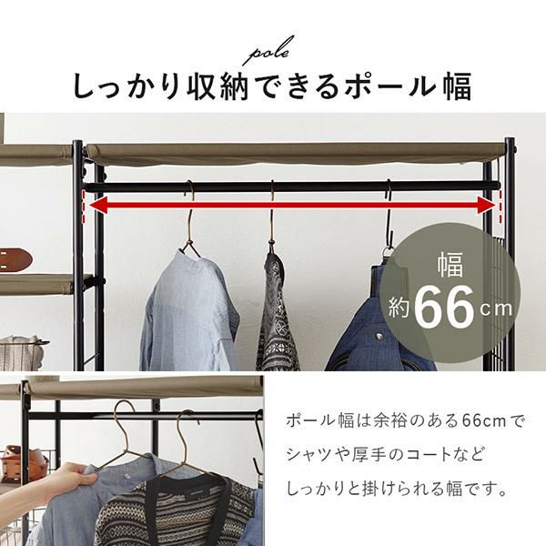 幅約66cmの前後可動式ハンガーポールはスライドさせてお好みの位置に調整できます。