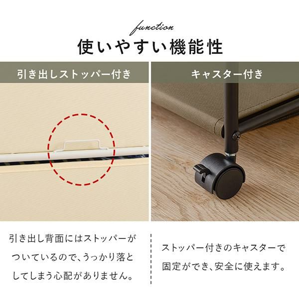 キャスターはストッパー付きで固定ができ、ちょっとした移動も叶います。