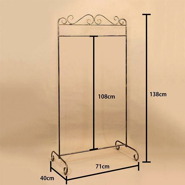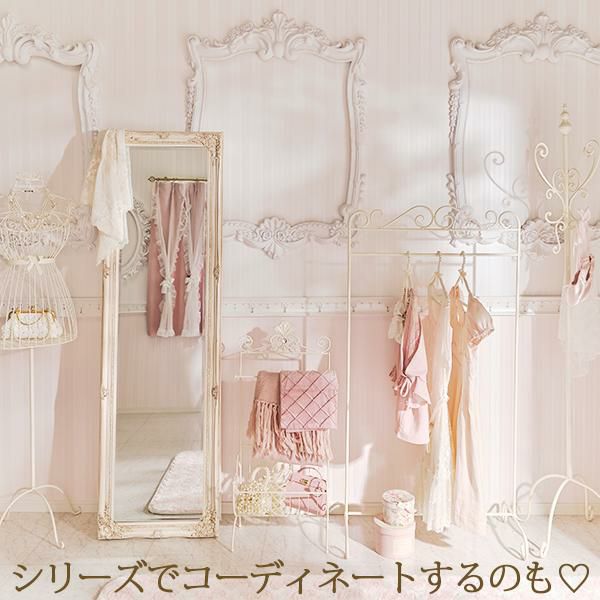 装飾性のあるアイアンデザインが上品なハンガーラック。ベッドルームやリビングなど、お部屋のどこに置いても絵になるデザインです。クリームは単色ですが、ダークゴールドはアンティーク加工が施され、より雰囲気のカラーに仕上げました。