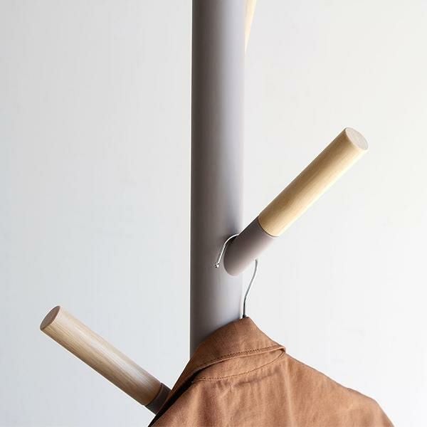 部屋のインテリアと馴染みやすいニュアンスカラー。フック部分は木のぬくもりを残したカラーリングでナチュラルな雰囲気に仕上げました。