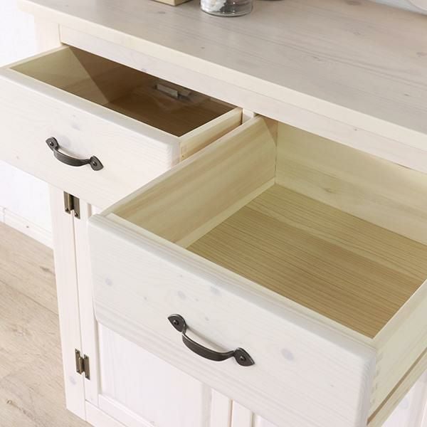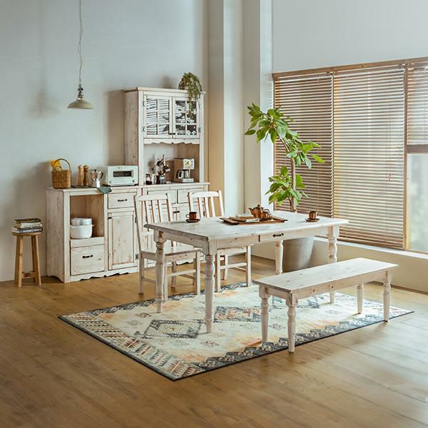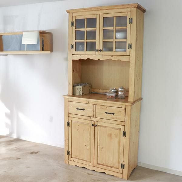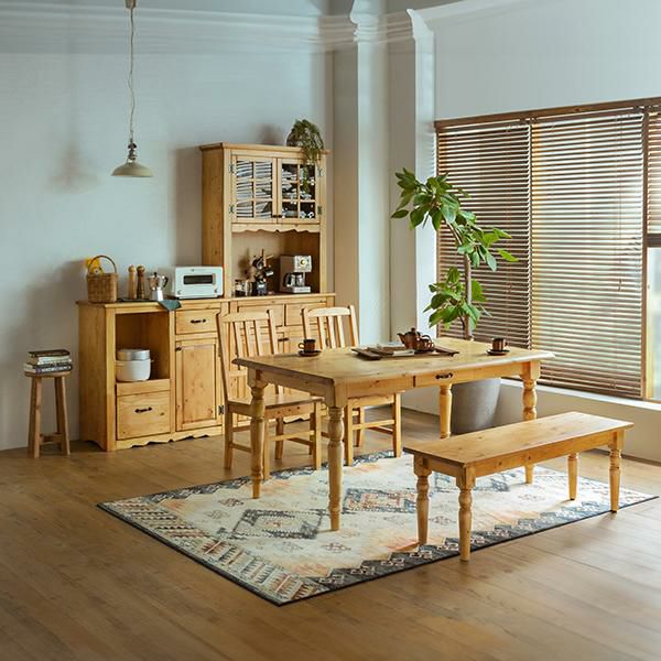 クラシカルなデザインと北欧パインの質感がナチュラルで上品なムードのカップボード。