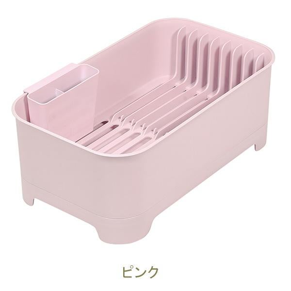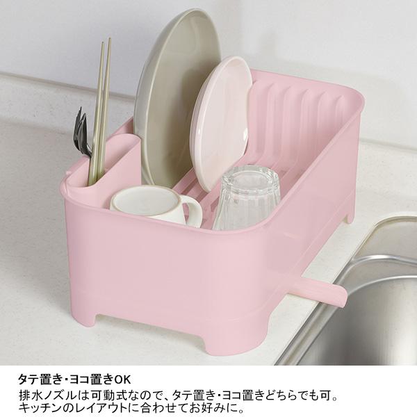 タテ・ヨコ置きのどちらでも使える可動式排水ノズルを採用。排水栓を閉めればシンク奥など場所を選ばず設置可能。カトラリー収納に便利なポケット付き。