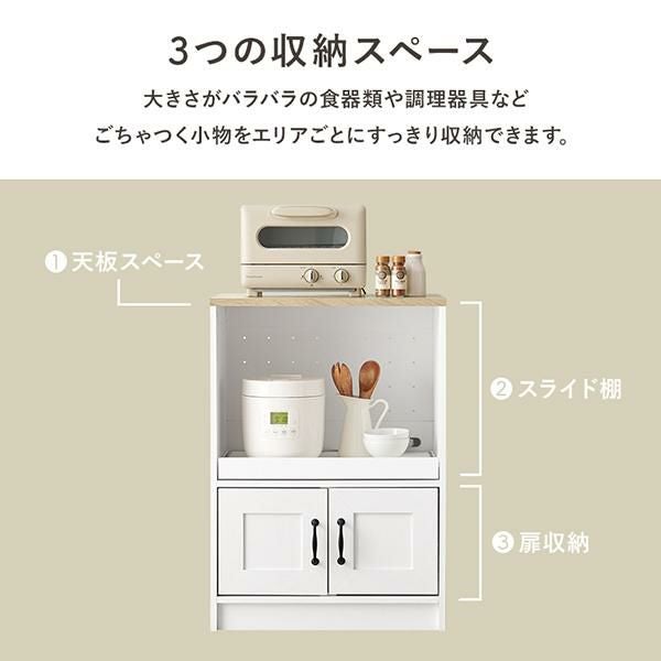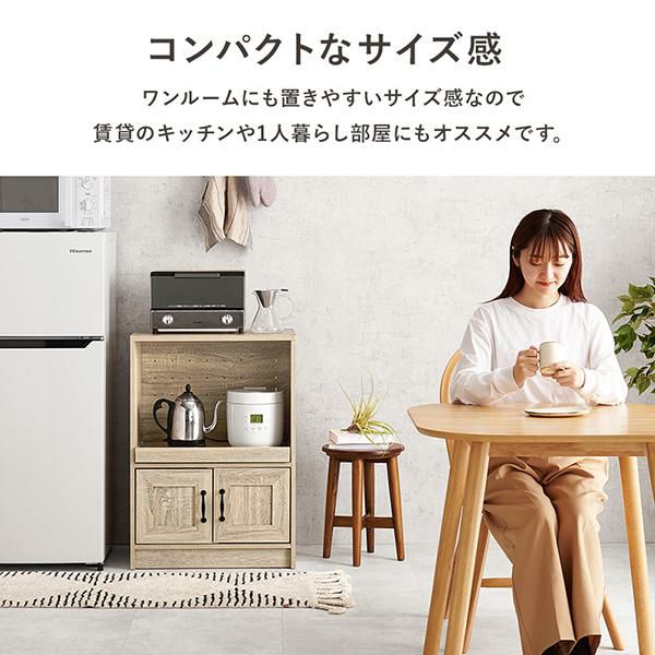 自由に使える天板スペースには電子レンジやなどの家電を置いたり、ちょっとした作業をするのにちょうどいいサイズ感。