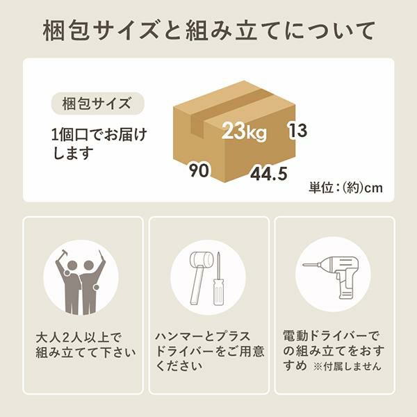 ※組立て時、床を傷つける場合がありますので、下にマットなどを敷いて床を保護してから組立てを始めてください。