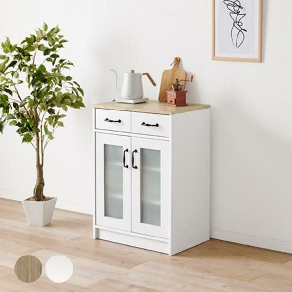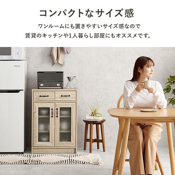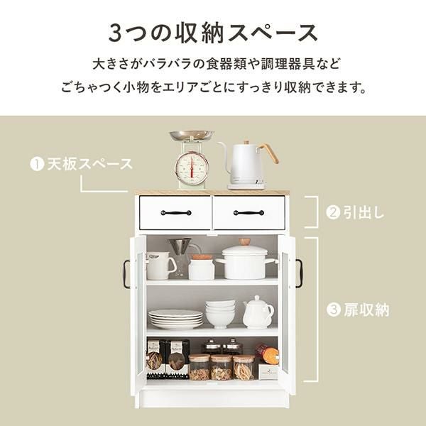 可動棚2枚付きの扉収納は食器やお鍋などの調理器具やストック収納に便利。