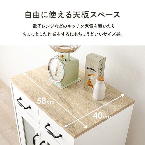 自由に使える天板スペースには電子レンジやなどの家電を置いたり、ちょっとした作業をするのにちょうどいいサイズ感。