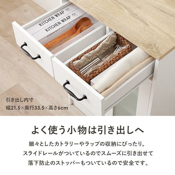 引き出しは細々としたカトラリーやラップの収納にピッタリ。スライドレール付きなのでスムーズに引き出せます。