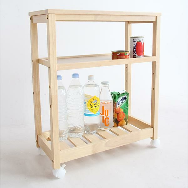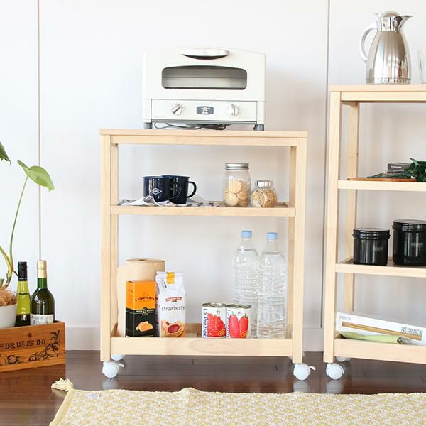 キッチンのすき間収納にもおすすめ。スリムタイプの3段木製ワゴン