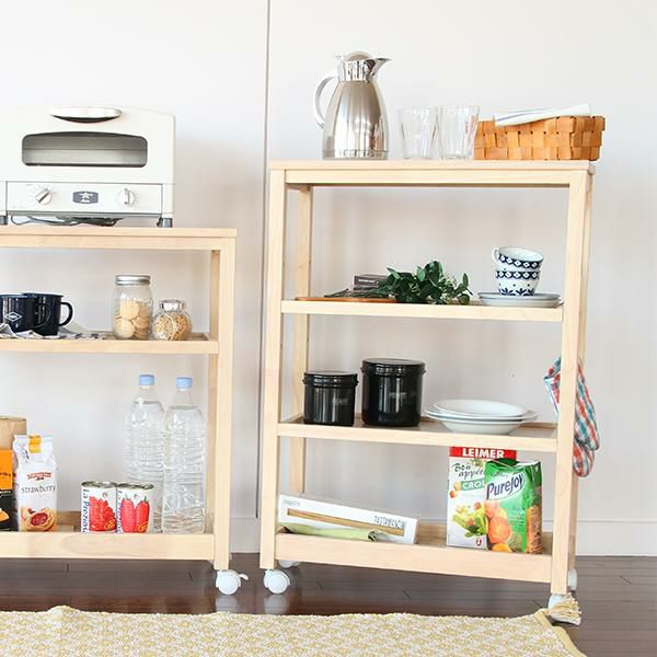 キッチンのすき間収納にもおすすめ。スリムタイプの4段木製ワゴン