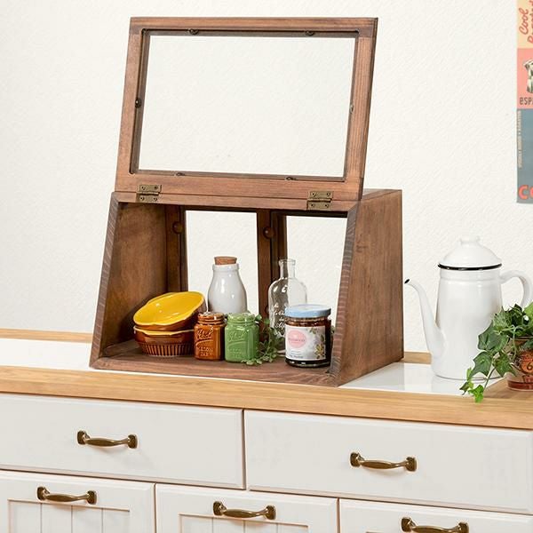 木のぬくもりを活かしたカフェ風のオシャレなデザインのディスプレイケース
