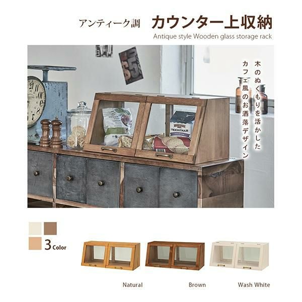 アンティーク調の取っ手がムードたっぷりのガラス収納棚。