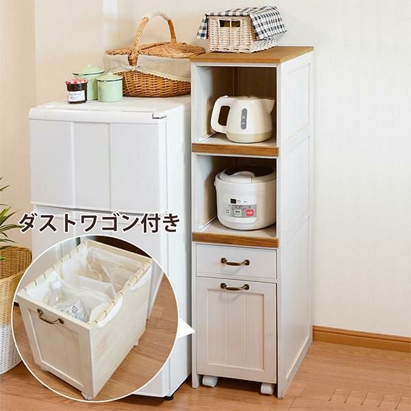 炊飯器や電気ケトルをまとめてすっきり!ダストワゴンは収納ワゴンにもなる2WAY仕様。