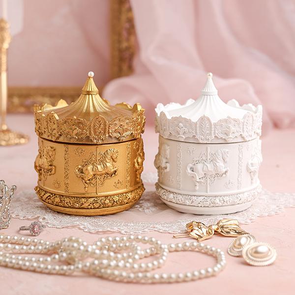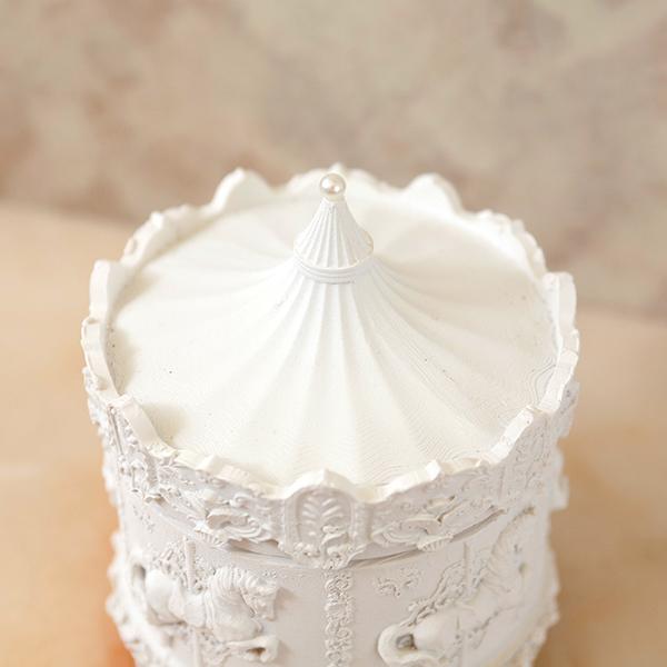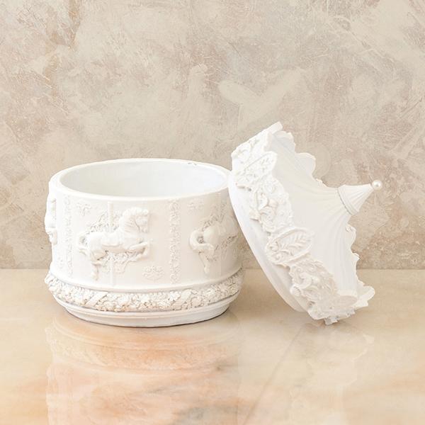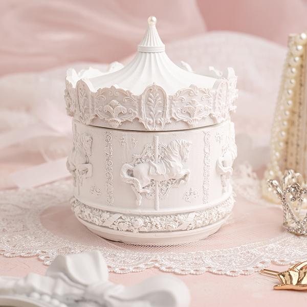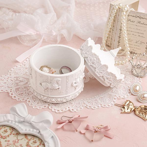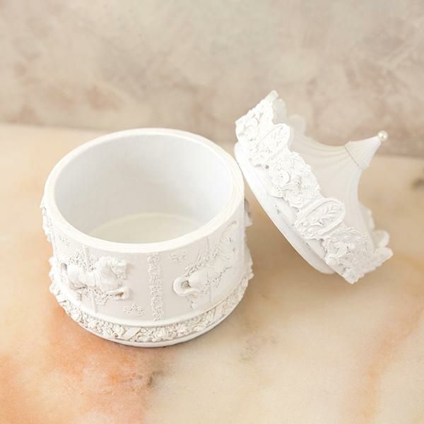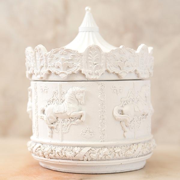 繊細なデザインのメリーゴーランドがかわいい小物入れ。デスクやチェスト、ちょっとした棚上のディスプレイとしても素敵。洗練された美しさでお部屋の雰囲気を引き立ててくれそう♪
