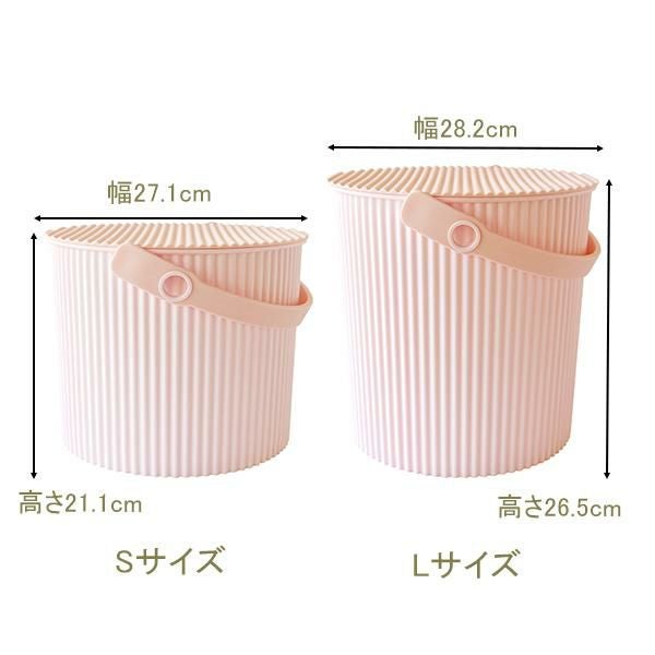 お部屋を包み込むようなパステルカラーは、お部屋にやわらかい印象を与え、空間にぬくもりと安らぎを添えます。淡い色彩はインテリアによく馴染み、重ねれば省スペースで収納ができるので「見せる収納」としてお部屋に置いておくだけでもかわいいです。しっかり握れる持ち手(ハンドル)付きで移動にも困りません。耐荷重150kgの丈夫な品質なので、フタをすれば簡易スツールとしても使えます。耐熱温度120度でお湯でも洗えるので汚れても気軽にお手入れできます。Lサイズは10L。小物入れとしても、つけ置き洗い用のバケツとしてもおすすめです。