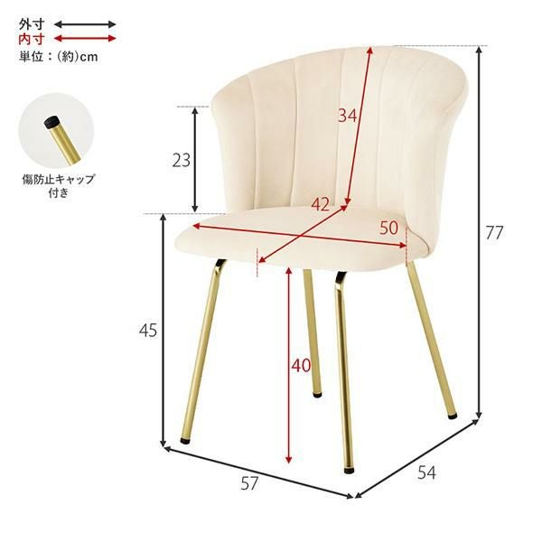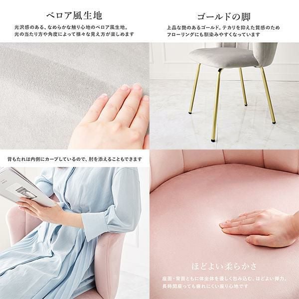 上品な艶のあるゴールドの脚はテカリを抑えた質感のため、フローリングにも馴染みやすく「ベロア調素材×ゴールド脚」でエレガントな雰囲気。