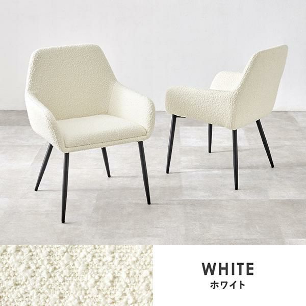 ぽこぽことした質感が特徴的なブークレ生地にブラックのスチール脚を組み合わせた、お部屋のアクセントになるダイニングチェア2脚セット。